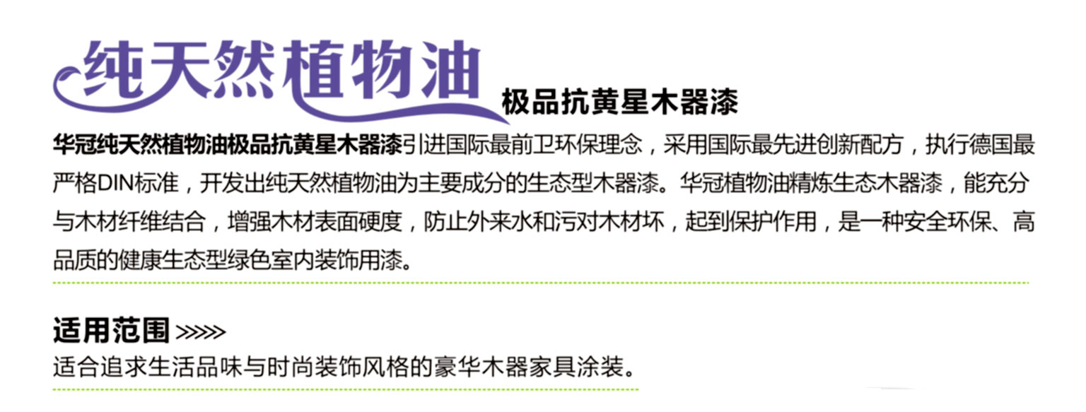 符合GBI8581《室內(nèi)裝飾裝修材料溶劑型木器涂料中的有害物質(zhì)限量》國家標準,新一代改良產(chǎn)品,采用高檔樹脂,高新技術(shù)固化劑,全新制漆技術(shù)和配方,純天然環(huán)保,低VOC、超強抗刮傷、耐黃變性能佳、漆膜豐滿度高,防水防潮、高硬度等多項優(yōu)點。