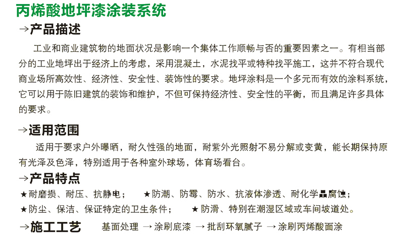 適用于要求戶外曝曬,耐久性強(qiáng)的地面,耐紫外光照射不易分解或變黃,能長期保持原有的光澤及色澤,特別適用于各種室外球場,體育場看臺。
