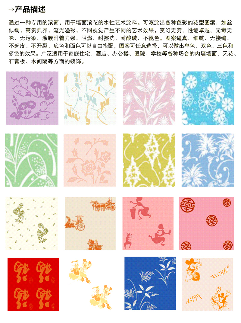 通過一種專用的滾筒,用于墻面滾花的水性藝術涂料。