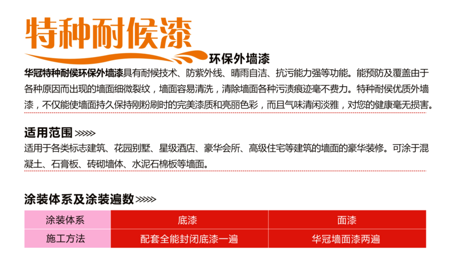 * 環(huán)保無毒:在漆膜表面形成強(qiáng)力保護(hù)屏障,具極佳的抗污抗堿功能。